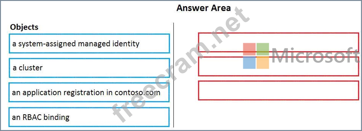 You need to provision an Azure Kubernetes Services (AKS) cluster in Subscription1 and set the permissions for the cluster by using RBAC roles that reference the identities in contoso.com.