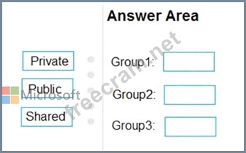 Which type of distribution group should you use for each group? To answer, drag the appropriate group types to the correct locations. Each group type may be used once, more than once, or not at all. You may need to drag the split bar between panes or scroll to view content.
