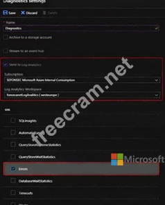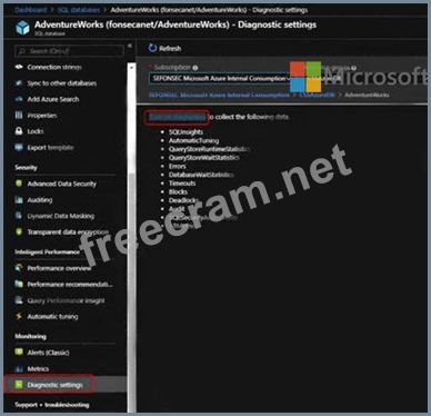 Which option should you select in the Diagnostics settings of the database?