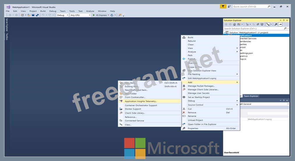 1. Open your ASP.NET Core Web App project in Visual Studio > Right-click on the AppName in the Solution Explorer > Select Add > Application Insights Telemetry.