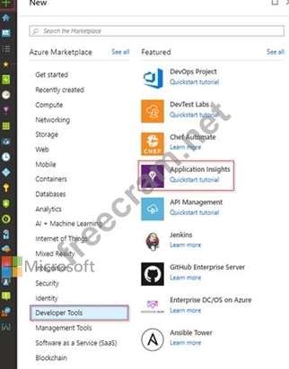 2. Log into your Azure account, Select Create a resource > Developer tools > Application Insights.