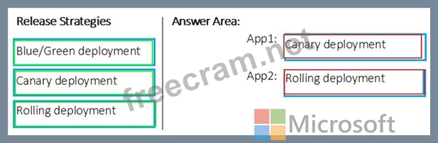 Which release strategy should you use for each application? To answer, drag the appropriate release strategies to the correct applications. Each release strategy may be used once, more than once, or not at all. You may need to drag the split bar between panes or scroll to view content.
