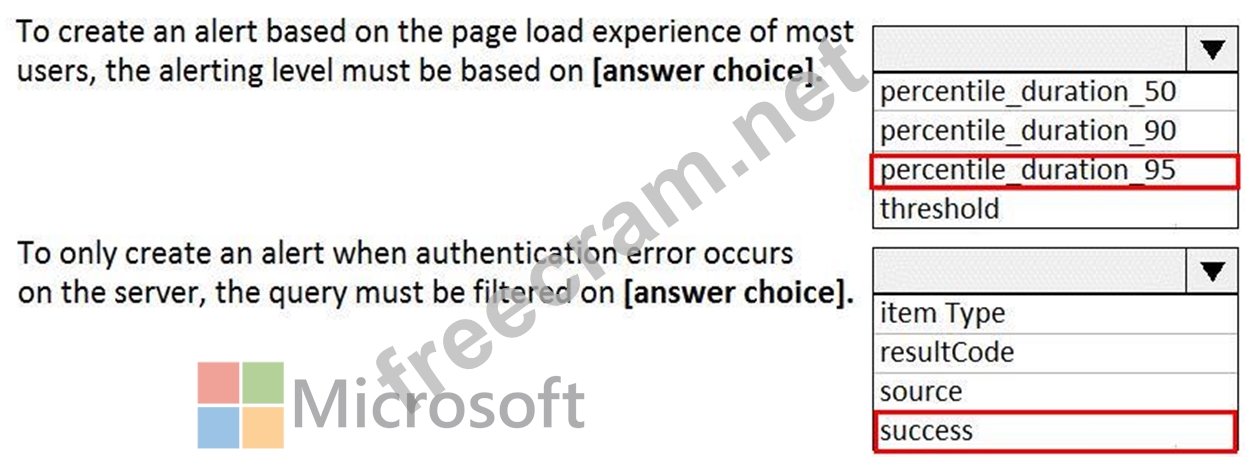 You plan to create alerts that will be triggered based on the page load performance of a home page.