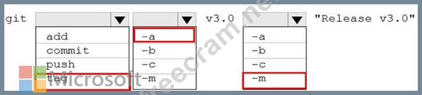 How should you complete the git command? To answer, select the appropriate options in the answer area.