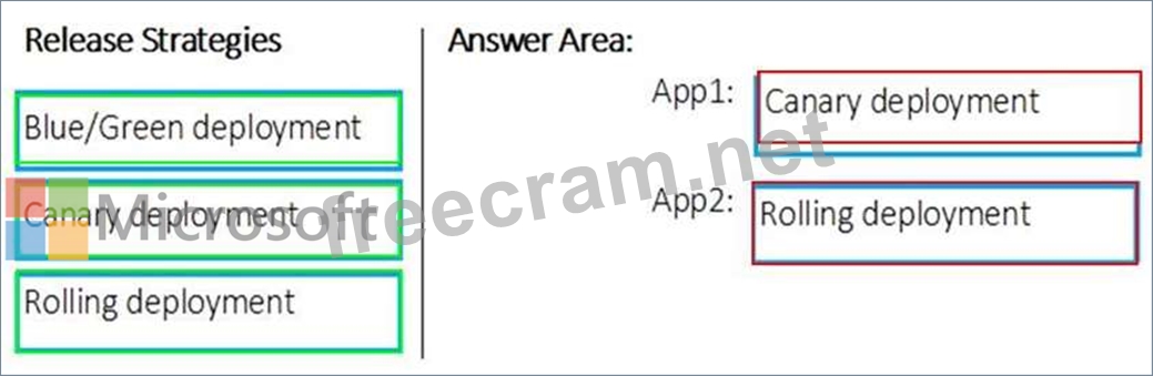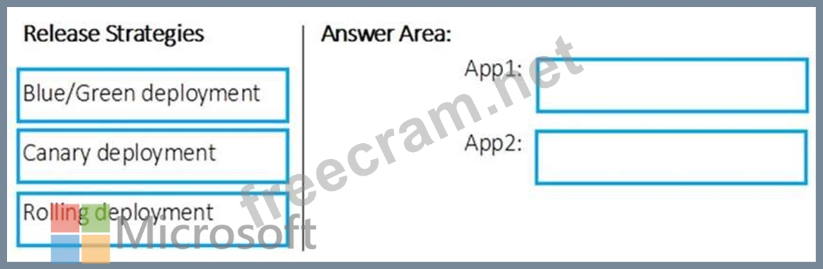 Which release strategy should you use for each application? To answer, drag the appropriate release strategies to the correct applications. Each release strategy may be used once, more than once, or not at all. You may need to drag the split bar between panes or scroll to view content.