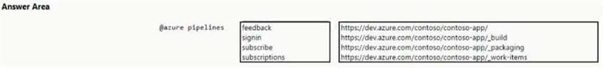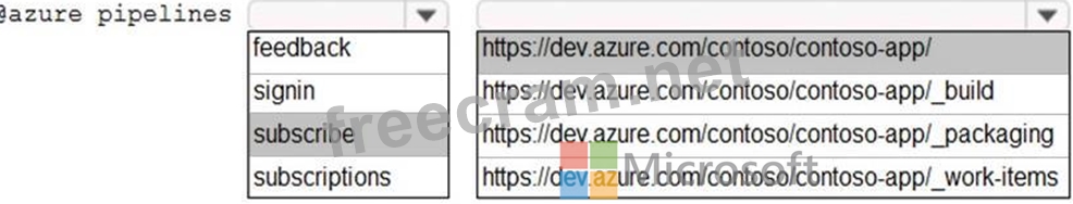 You have a project in Azure DevOps named Contoso App that contains pipelines in Azure Pipelines for GitHub repositories. You need to ensure that developers receive Microsoft Teams notifications when there are failures in a pipeline of Contoso App. What should you run in Teams? To answer, select the appropriate options in the answer area. NOTE: Each correct selection is worth one point.