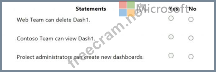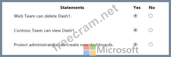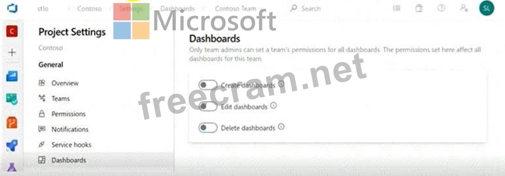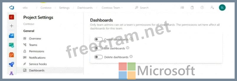 You configure the dashboard permissions for the Contoso project as shown in the Permissions exhibit (Click the Permissions tab.)