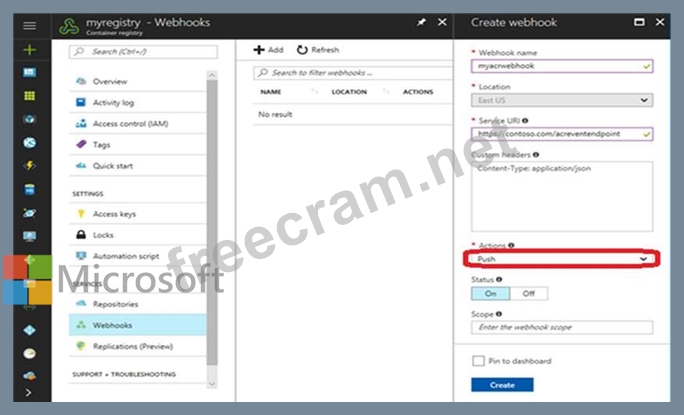 You need to ensure that the https://contoso.com/statushook webhook is called every time a repository named az40010480345acr1 receives a new version of an image named dotnetapp.