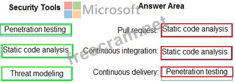 Which type of security tool should you recommend for each stage of the development process? To answer, drag the appropriate security toots to the correct stages. Each security tool may be used once, more than once, or not at all. You may need to drag the split bar between panes or scroll to view content NOTE: Each correct selection is worth one point.