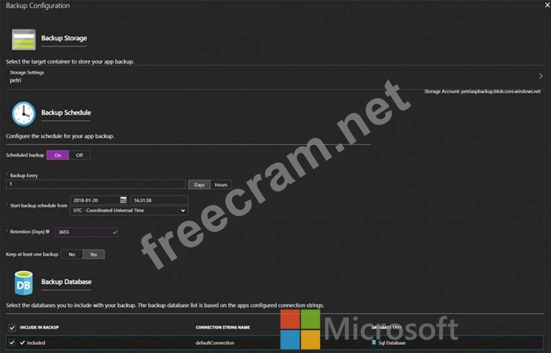 Your company plans to implement a new compliance strategy that will require all Azure web apps to be backed up every five hours.