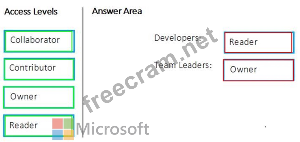 Which package feed access levels should be assigned to the Developers and Team Leaders groups for the investment planning applications suite? To answer, drag the appropriate access levels to the correct groups. Each access level may be used once, more than once, or not at all. You may need to drag the split bar between panes or scroll to view content.