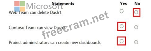 You configure the dashboard permissions for the Contoso project as shown in the Permissions exhibit (Click the Permissions tab.)
