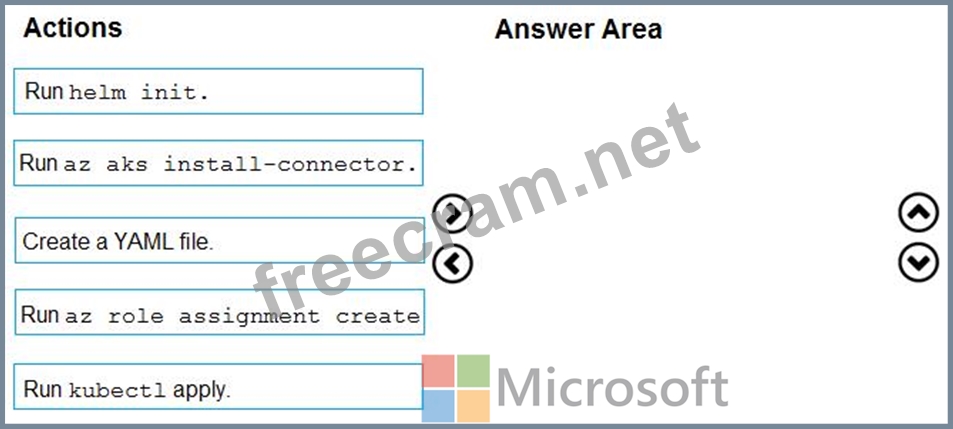 You need to conjure Azure Container Instances as a hosted environment for running me containers in AKS. Which three actions should you perform m sequence?