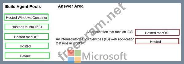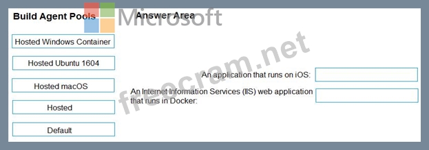 Which build agent pool should you use to compile each application type? To answer, drag the appropriate built agent pools to the correct application types. Each butt agent pool may be used once, more than once, or not at all. You may need to drag the split bar between panes or scroll to view content.