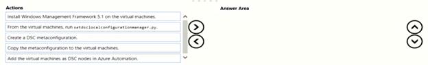 You plan to use the company's Azure Automation State Configuration implementation to manage the two virtual machines and detect configuration drift.
