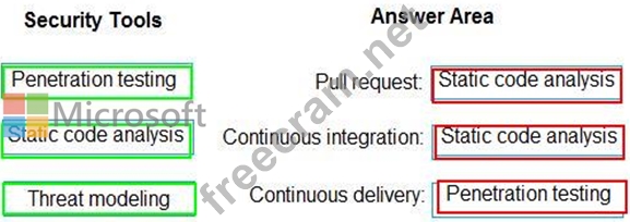 Which type of security tool should you recommend for each stage of the development process? To answer, drag the appropriate security toots to the correct stages. Each security tool may be used once, more than once, or not at all. You may need to drag the split bar between panes or scroll to view content NOTE: Each correct selection is worth one point.