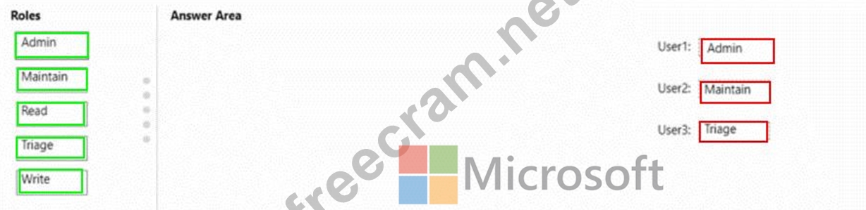 You have a GrtHub organization that contains three users named User 1. User2. and User3. You have a project that contains a repository named repo1. You need to configure permissions for repo1. The solution must meet the following requirements: