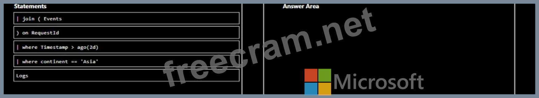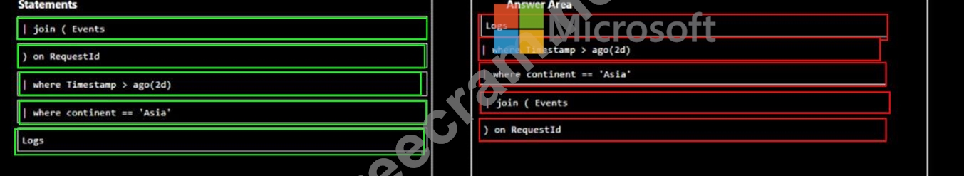 In which order should you arrange the query statements? To answer, move all statements from the let of statements to the answer area and arrange them in the correct order.