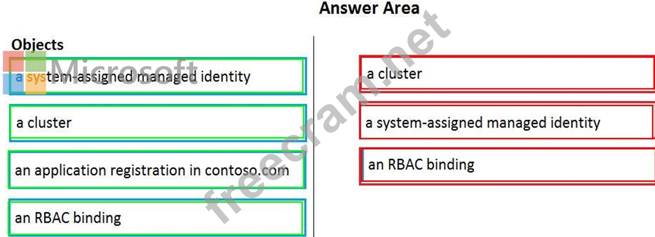 You need to provision an Azure Kubernetes Services (AKS) cluster in Subscription1 and set the permissions for the cluster by using RBAC roles that reference the identities in contoso.com.