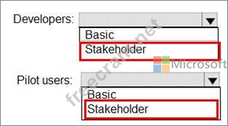 You need to identify which access levels are required to ensure that developers can request and gather feedback from the pilot users. The solution must use the principle of least privilege.