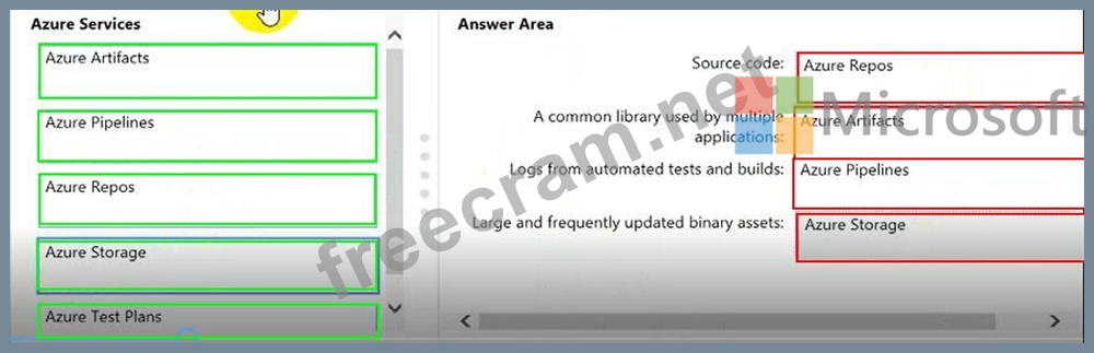 Where should you store each asset? To answer, drag the appropriate Azure services to the correct assets. Each service may be used once. You may need to drag the split bar between panes or scroll to view content.