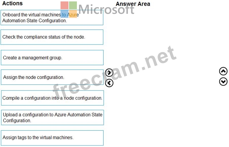 Question 85: You add the virtual machines as managed nodes in Azure Autom...