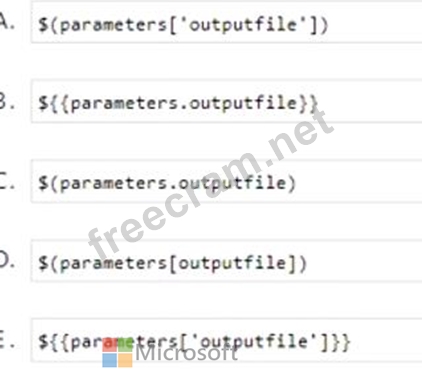 You are designing a YAML template for use with Azure Pipelines. The template Will include the Outputfile parameter.