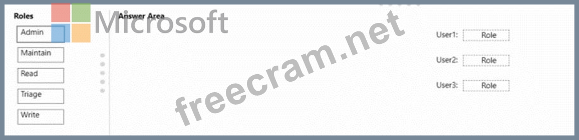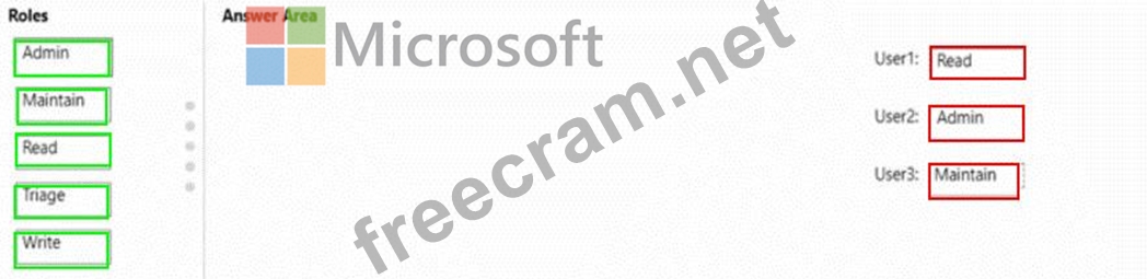 You have a GrtHub organization that contains three users named User 1. User2. and User3. You have a project that contains a repository named repo1. You need to configure permissions for repo1. The solution must meet the following requirements: