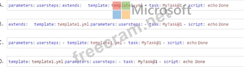 Question 65: You are designing a YAML template for use with Azure Pipelin...