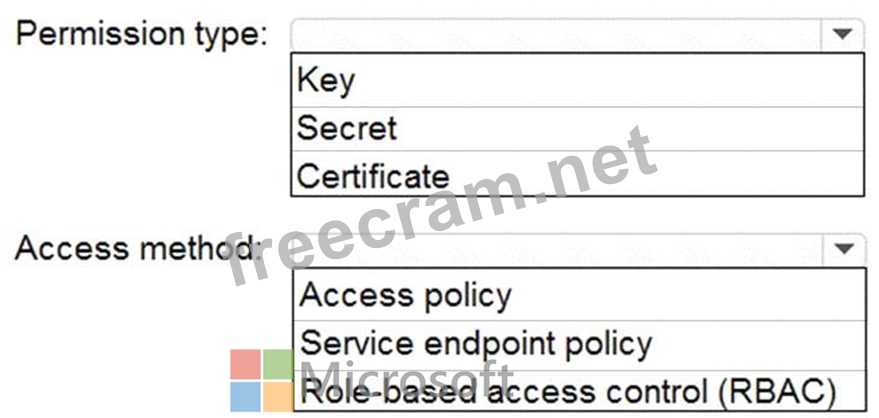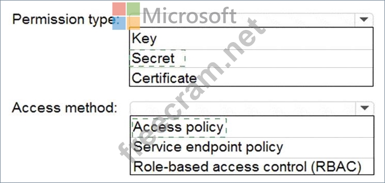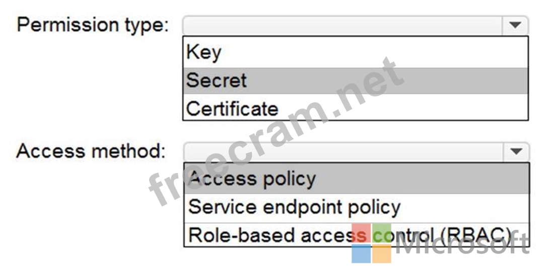 You need to configure DF1 to retrieve the password when the data factory connects to SQL1. The solution must use the principle of least privilege.
