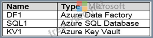 You plan to create a linked service in DF1. The linked service will connect to SQL1 by using Microsoft SQL Server authentication. The password for the SQL Server login will be stored in KV1.