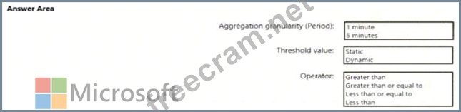 How should you configure the alert rule? To answer, select the appropriate options in the answer area.
