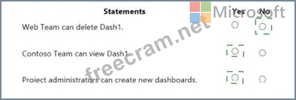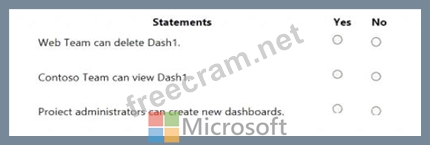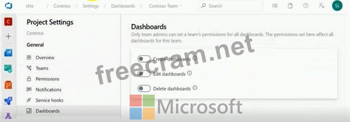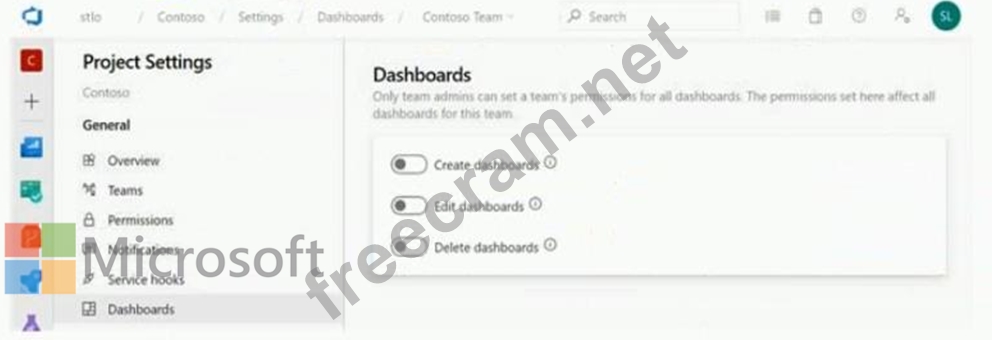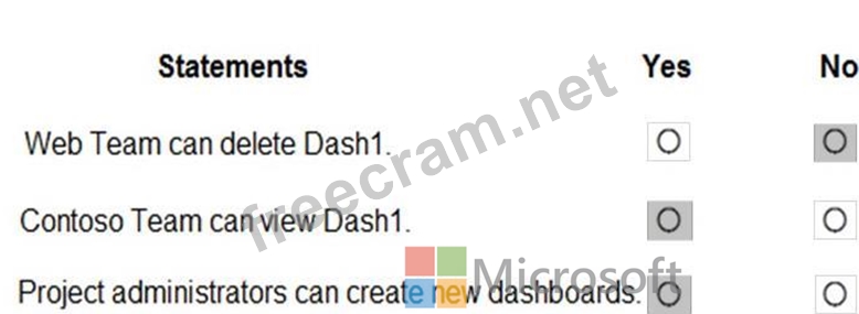 You configure the dashboard permissions for the Contoso project as shown in the Permissions exhibit (Click the Permissions tab.)