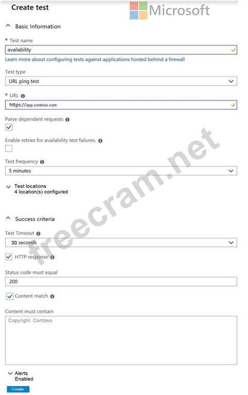 You create a test in Azure Application Insights as shown in the following exhibit.
