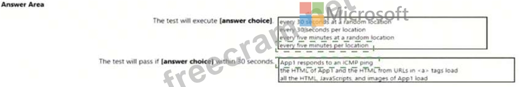 You have an application named App1 that has a custom domain of app.contoso.com. You create a test in Azure Application Insights as shown in the following exhibit.