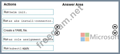 You need to conjure Azure Container Instances as a hosted environment for running me containers in AKS. Which three actions should you perform m sequence?