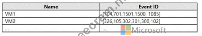 You need to identify the distinct event IDs of each virtual machine as shown in the following table.