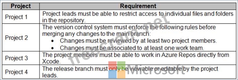 Your company has four projects. The version control requirements for each project are shown in the following table.