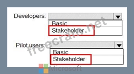 You need to identify which access levels are required to ensure that developers can request and gather feedback from the pilot users. The solution must use the principle of least privilege.