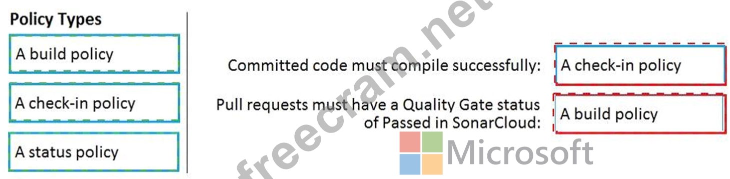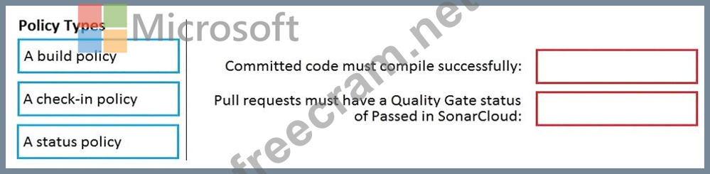 Which policy type should you configure for each requirement? To answer, drag the appropriate policy types to the correct requirements. Each policy type may be used once, more than once, or not at all. You may need to drag the split bar between panes or scroll to view content.
