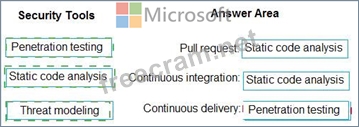 Which type of security tool should you recommend for each stage of the development process? To answer, drag the appropriate security toots to the correct stages. Each security tool may be used once, more than once, or not at all. You may need to drag the split bar between panes or scroll to view content NOTE: Each correct selection is worth one point.