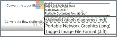 Your company uses GitHub for source control. GitHub repositories store source code and store process documentation. The process documentation is saved as Microsoft Word documents that contain simple flow charts stored as .bmp files.