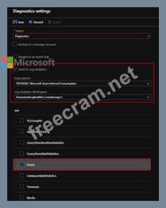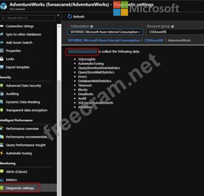 Which option should you select in the Diagnostics settings of the database?