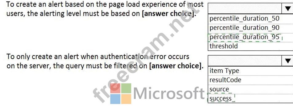 Question 43: (Exhibit) Your company wants to use Azure Application Insigh...