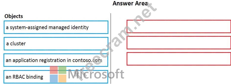 Which three objects should you create in sequence? To answer, move the appropriate objects from the list of objects to the answer area and arrange them in the correct order.