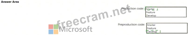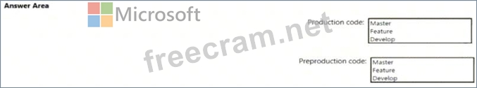 You need to identify which branch types are used for production code and preproduction code in the strategy.