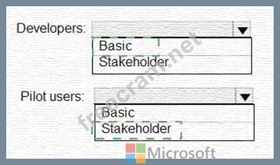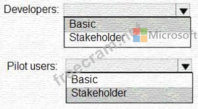 You need to identify which access levels are required to ensure that developers can request and gather feedback from the pilot users. The solution must use the principle of least privilege.
