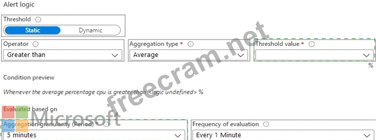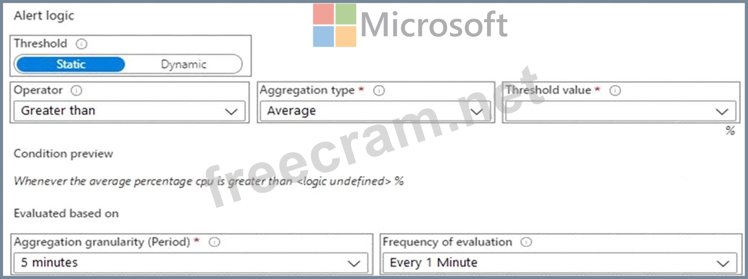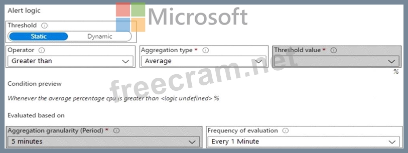 Question 8: You create an alert rule in Azure Monitor as shown in the fo...
