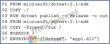 Question 173: You plan to create an image that will contain a.NET Core app...