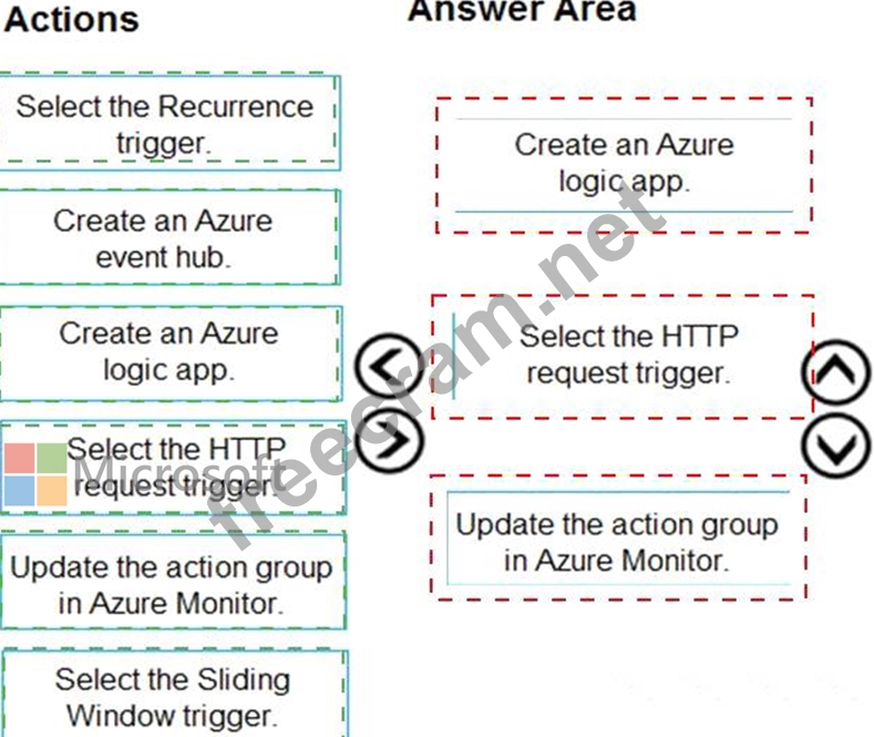 Which three actions should you perform in sequence? To answer, move theappropriate actions from the list of actions to the answer area and arrange them in the correct order.